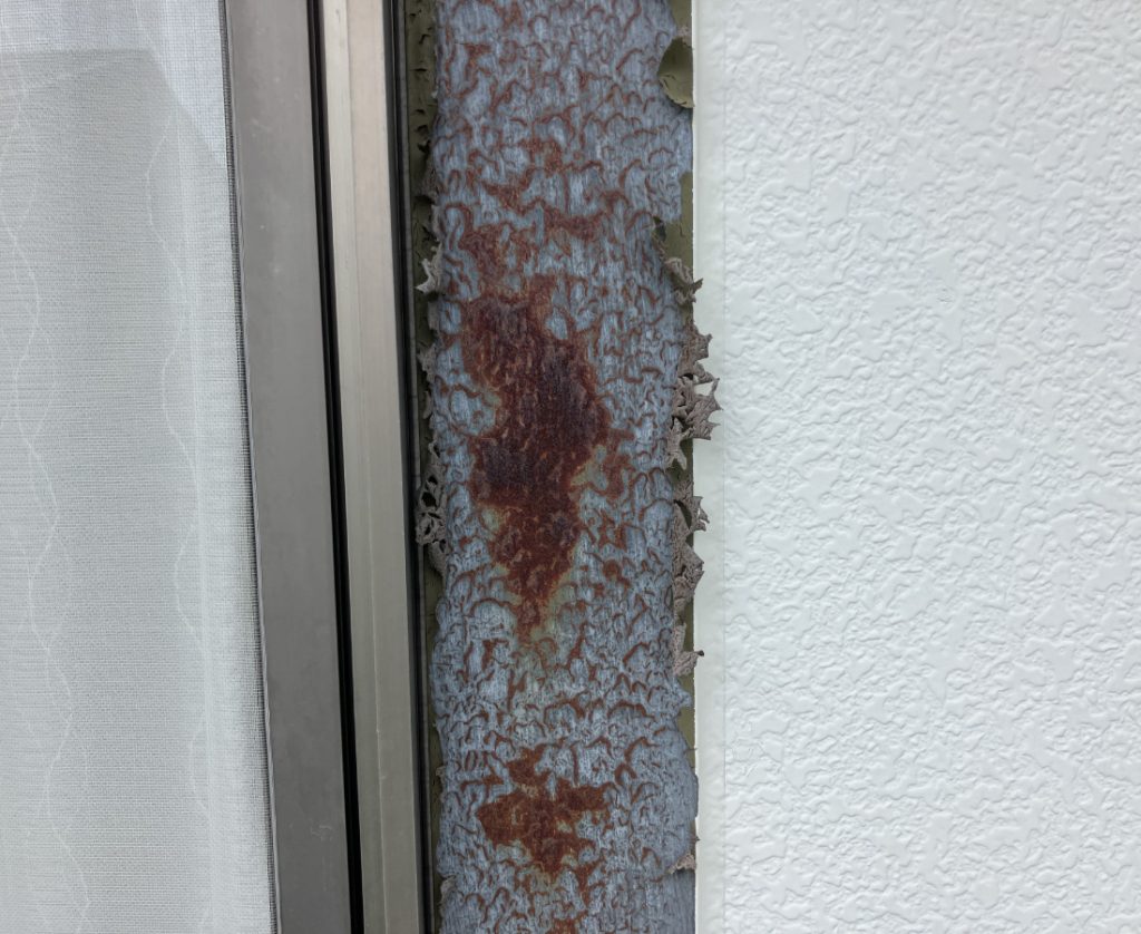 前回の塗装から10年以上経過していることもあり、外壁のチョーキングや鉄部の腐食が著しく、調査していくと屋根のカラーベストの割れや軒天のプリント合板の退色、縁側などの木部の劣化も見受けられました。鉄部は板金貼り替えなども検討しましたが、幸い穴までは空いていなかったため、今回は塗装でベストを尽くすこととなり、木部も強度の心配な部分のみ交換して塗装となりました。
