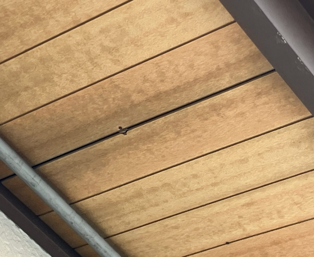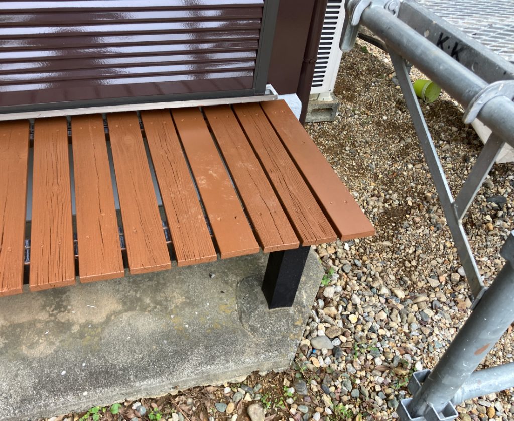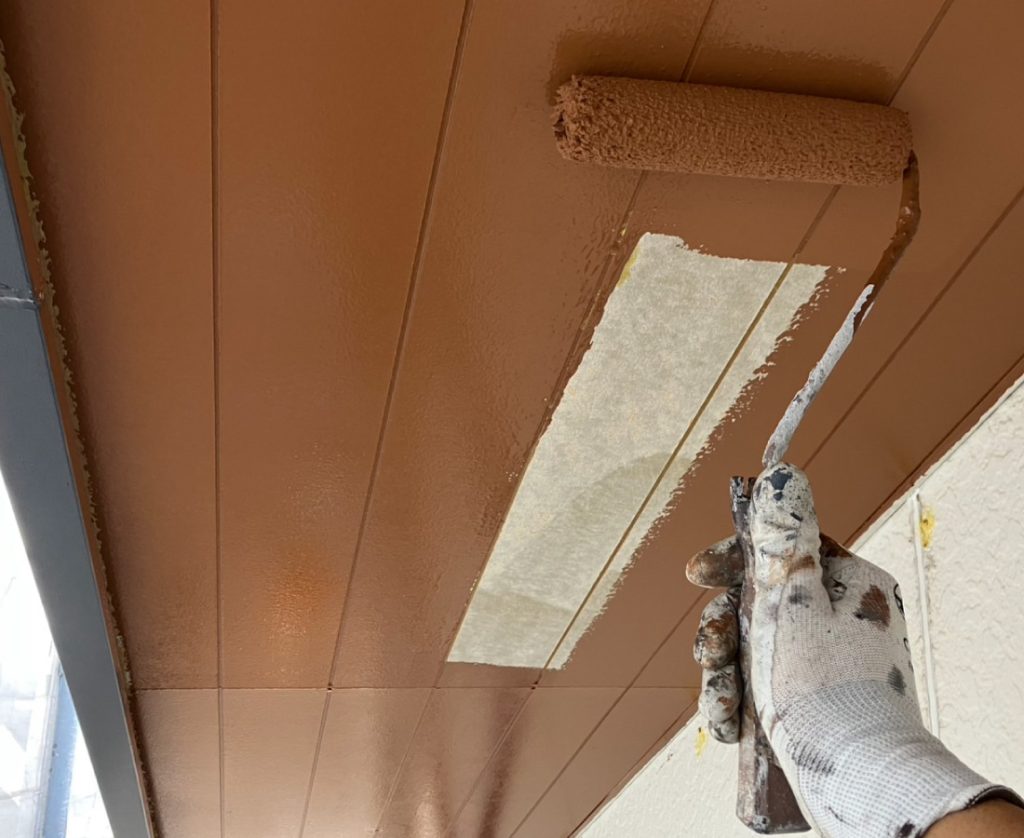 プリント合板は本来塗装不要の部位ではありますが、今回は退色が目立っていたこと、隙間や浮きが見受けられたことにより、美観向上のため、補修+塗装を行うこととしました。