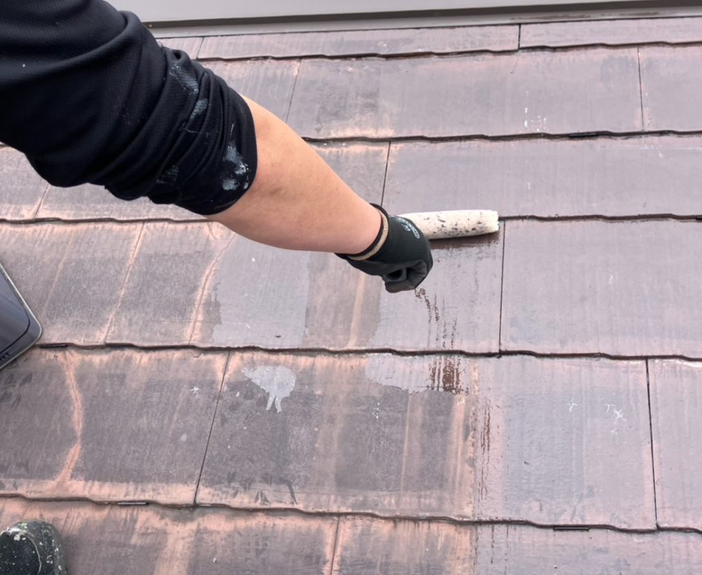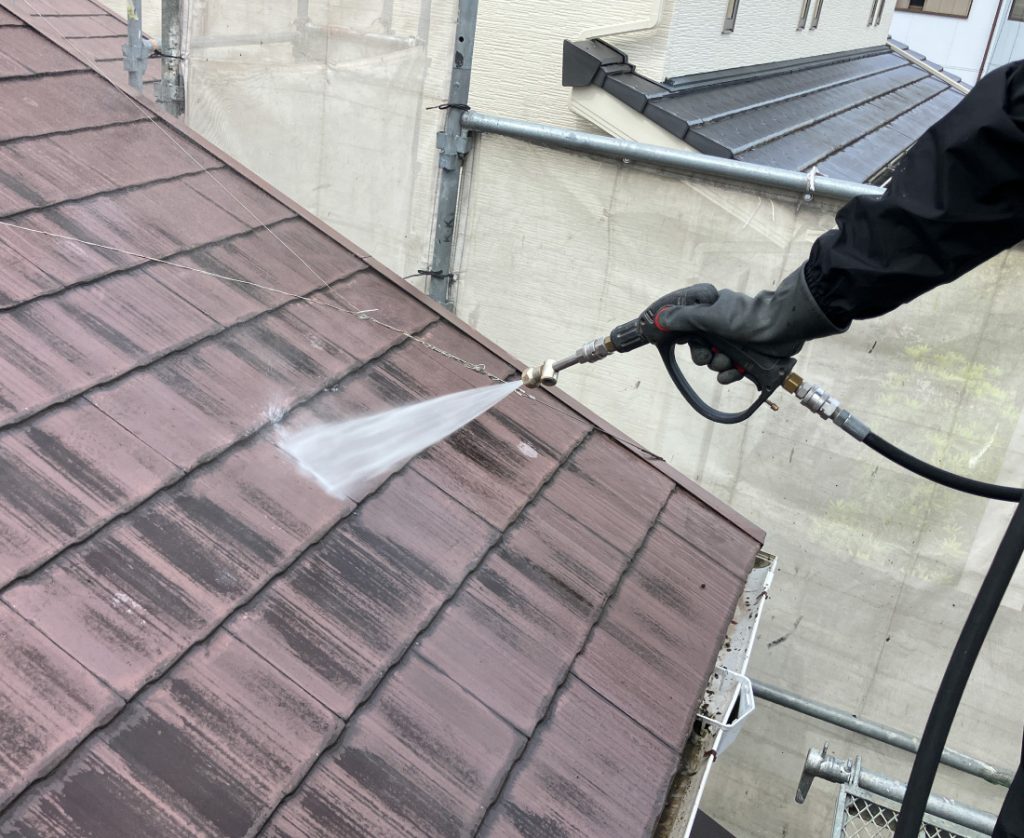 施工においては、足場を組み、外壁のチョーキングをしっかり高圧洗浄で落とし、シーリングを打替え下地を整えました。同時に屋根のカラーベストの割れも補修しました。