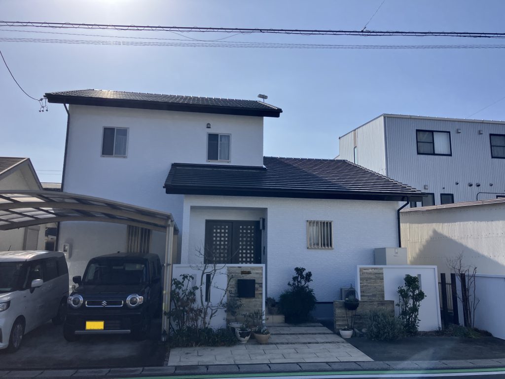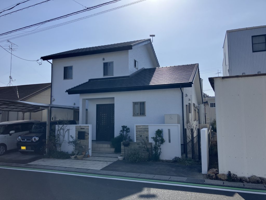 外壁を白くしたいというご要望があり、高耐久塗料の単色塗装でご契約いただきました。